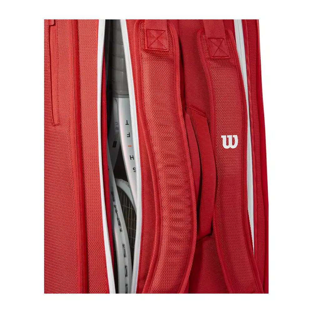 Deze nieuwe grote Wilson tennistas is speciaal geschikt voor de veeleisende wedstrijd en competitiespeler! In de Wilson Super Tour 9 Pack Red is er voldoende ruimte om naast uw rackets ook kleding, schoeisel en andere accessoires mee te nemen. Ook zeer handig zijn de 2 sterke en comfortabele rugtas-banden waardoor de Super Tour 9 Pack tennisbag ook op de fiets makkelijk te dragen is. Het toegepaste ThermoGuard 2.0 zorgt ervoor dat meegenomen drankjes en etenswaren lekker koel blijven.